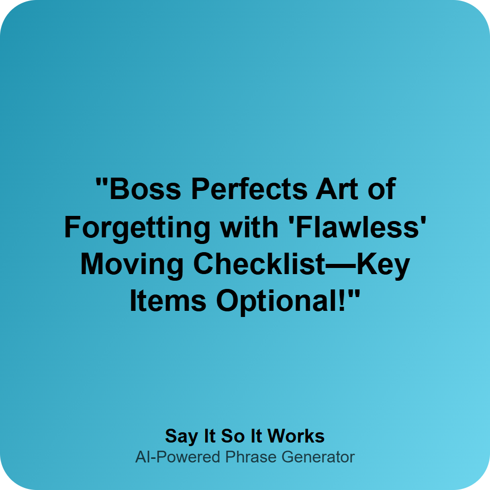 "Boss Perfects Art of Forgetting with 'Flawless' Moving Checklist—Key Items Optional!"