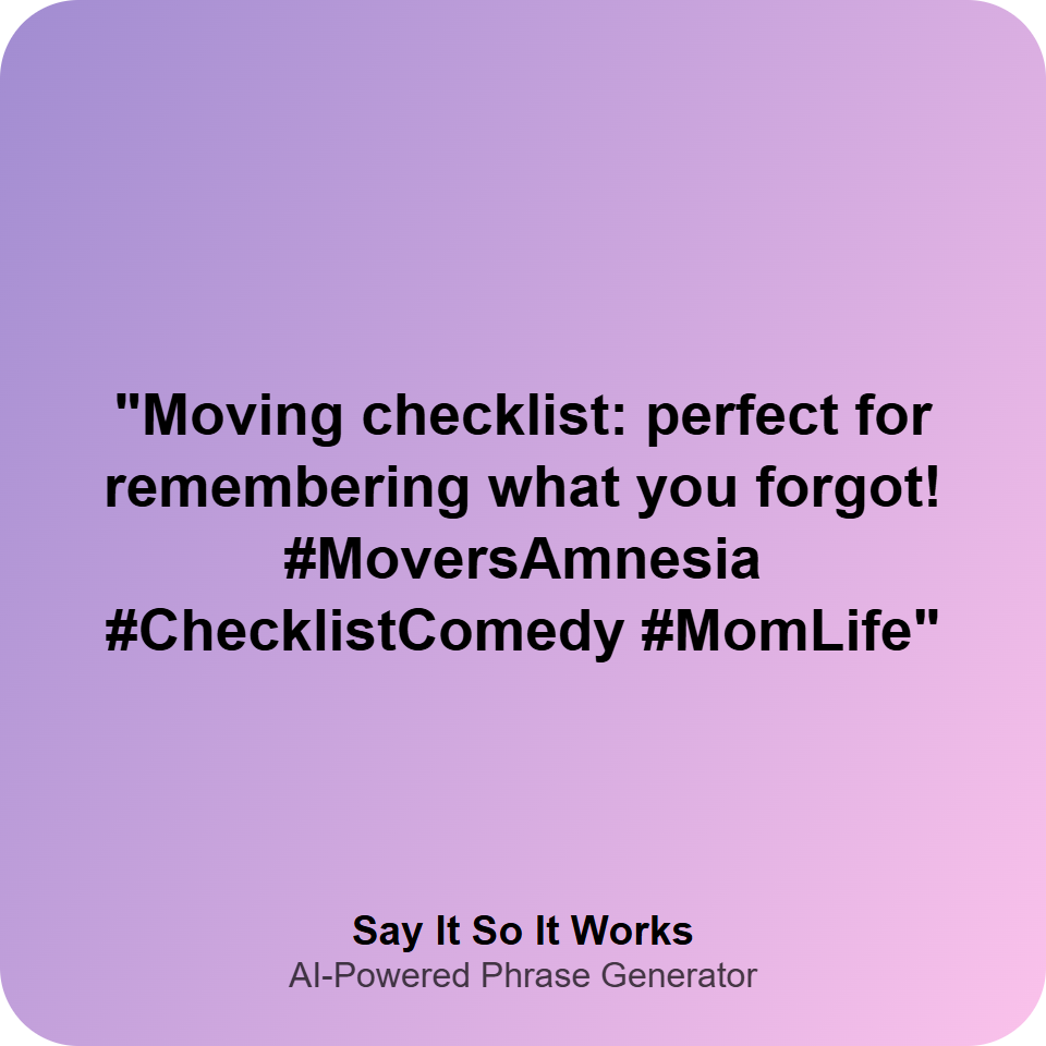"Moving checklist: perfect for remembering what you forgot! #MoversAmnesia #ChecklistComedy #MomLife"