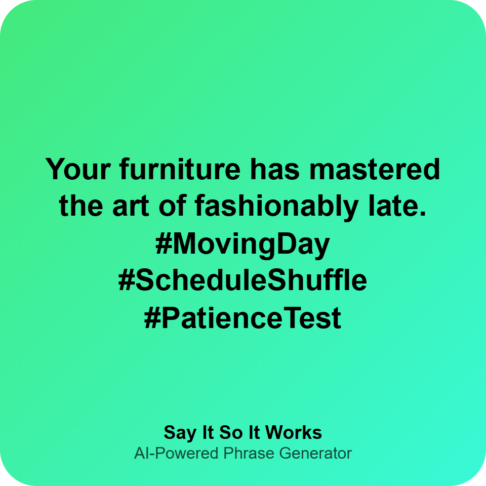 Your furniture has mastered the art of fashionably late. #MovingDay #ScheduleShuffle #PatienceTest