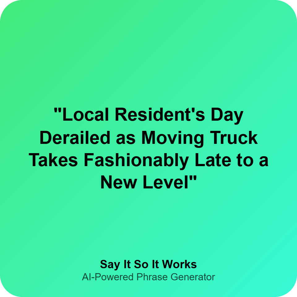 "Local Resident's Day Derailed as Moving Truck Takes Fashionably Late to a New Level"