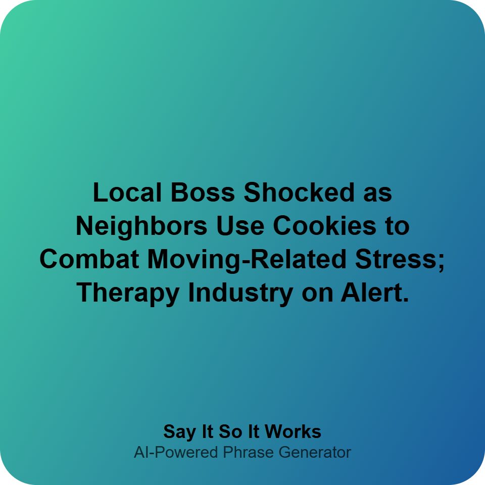 Local Boss Shocked as Neighbors Use Cookies to Combat Moving-Related Stress; Therapy Industry on Alert.