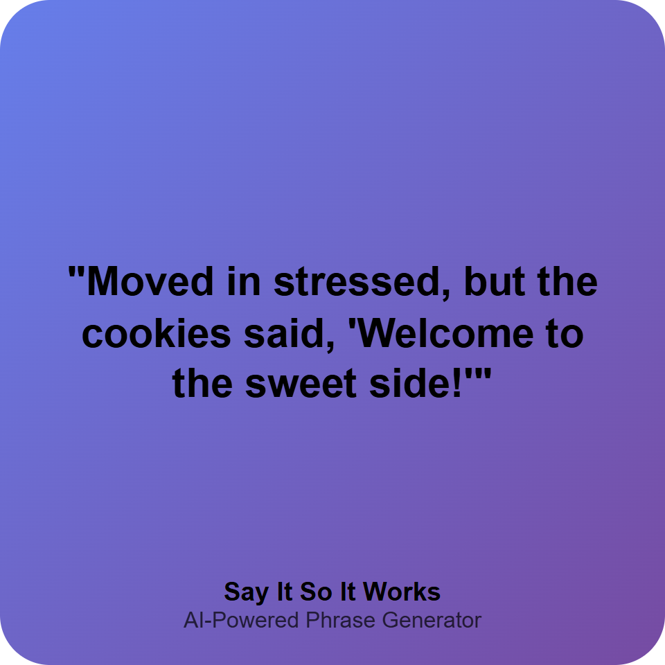 "Moved in stressed, but the cookies said, 'Welcome to the sweet side!'"