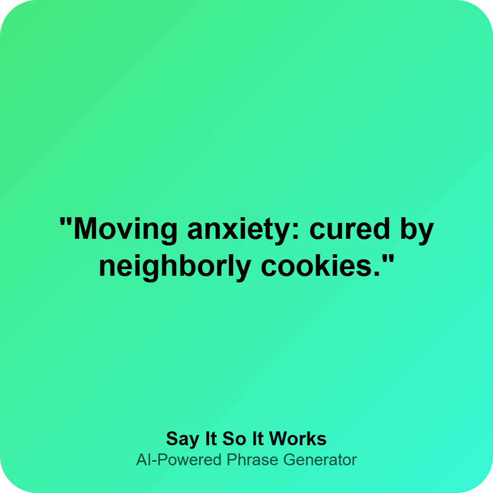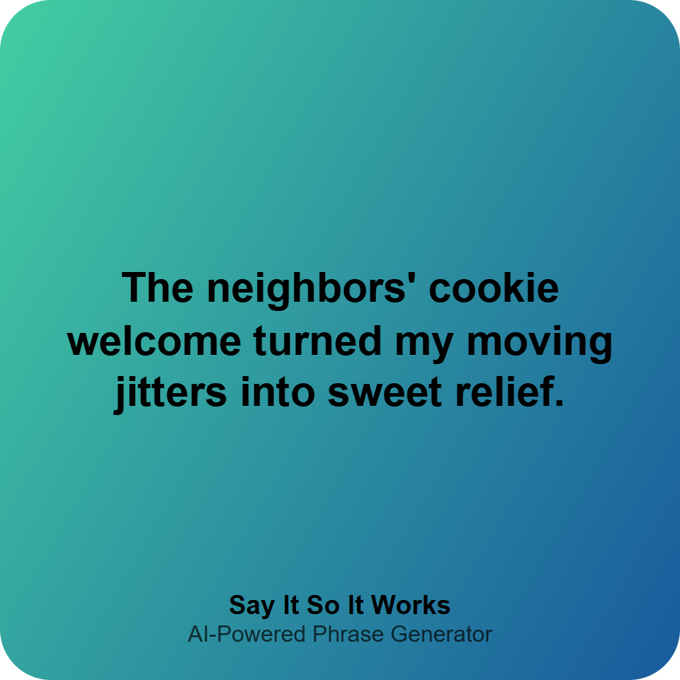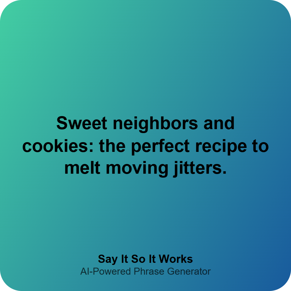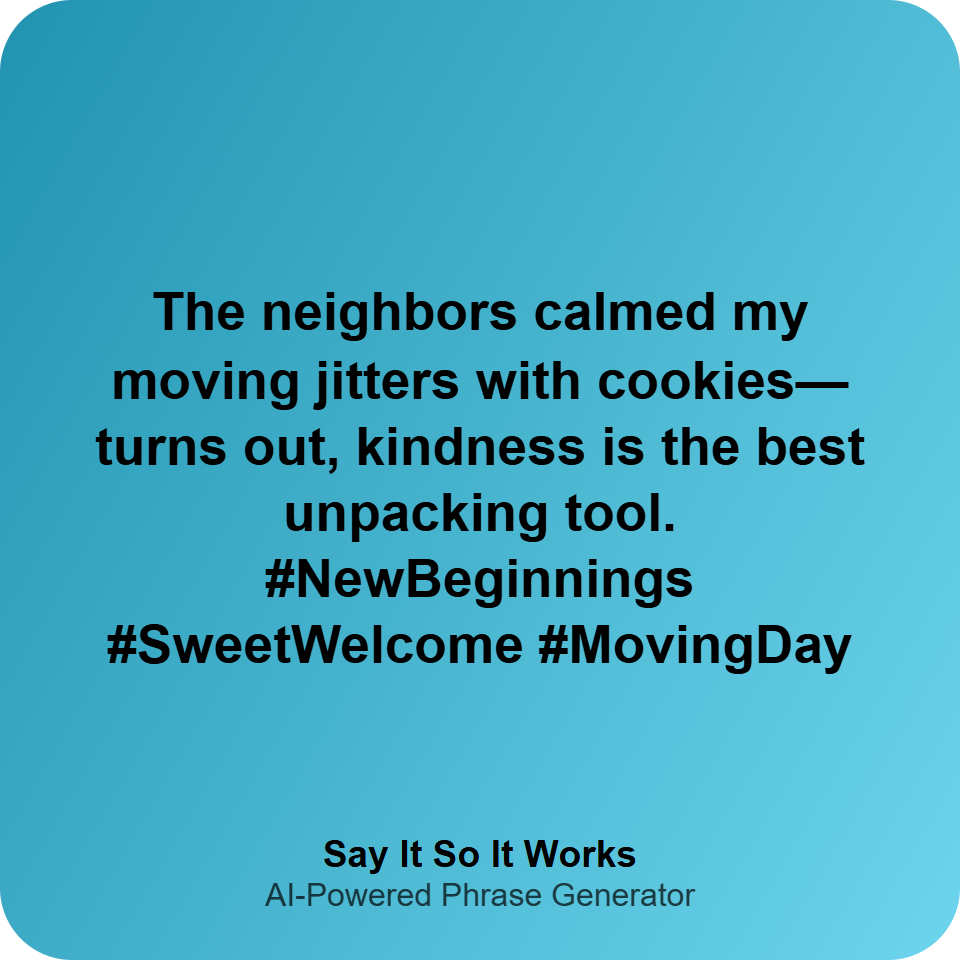 The neighbors calmed my moving jitters with cookies—turns out, kindness is the best unpacking tool. #NewBeginnings #SweetWelcome #MovingDay