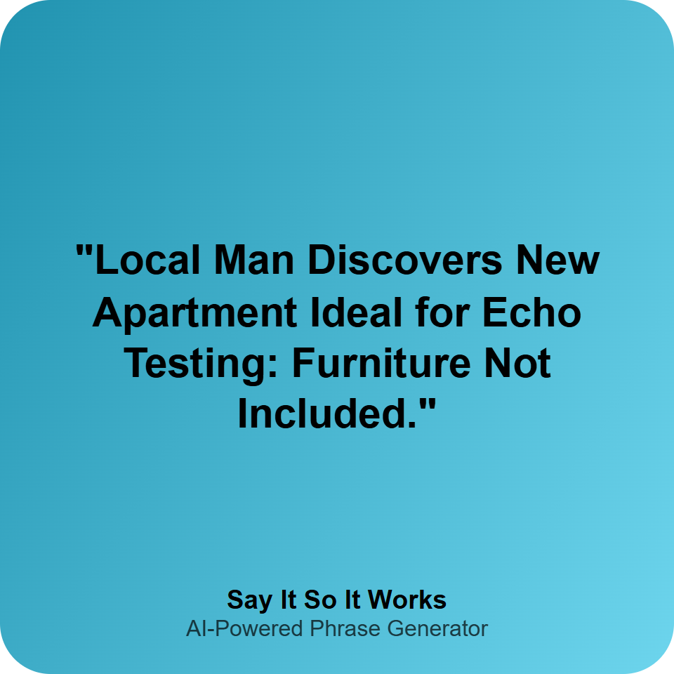"Local Man Discovers New Apartment Ideal for Echo Testing: Furniture Not Included."