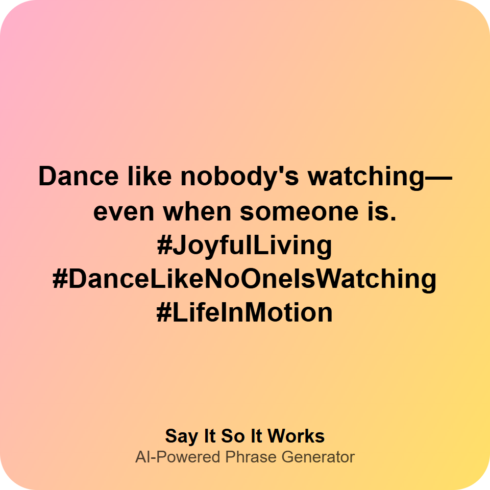Dance like nobody's watching—even when someone is. #JoyfulLiving #DanceLikeNoOneIsWatching #LifeInMotion