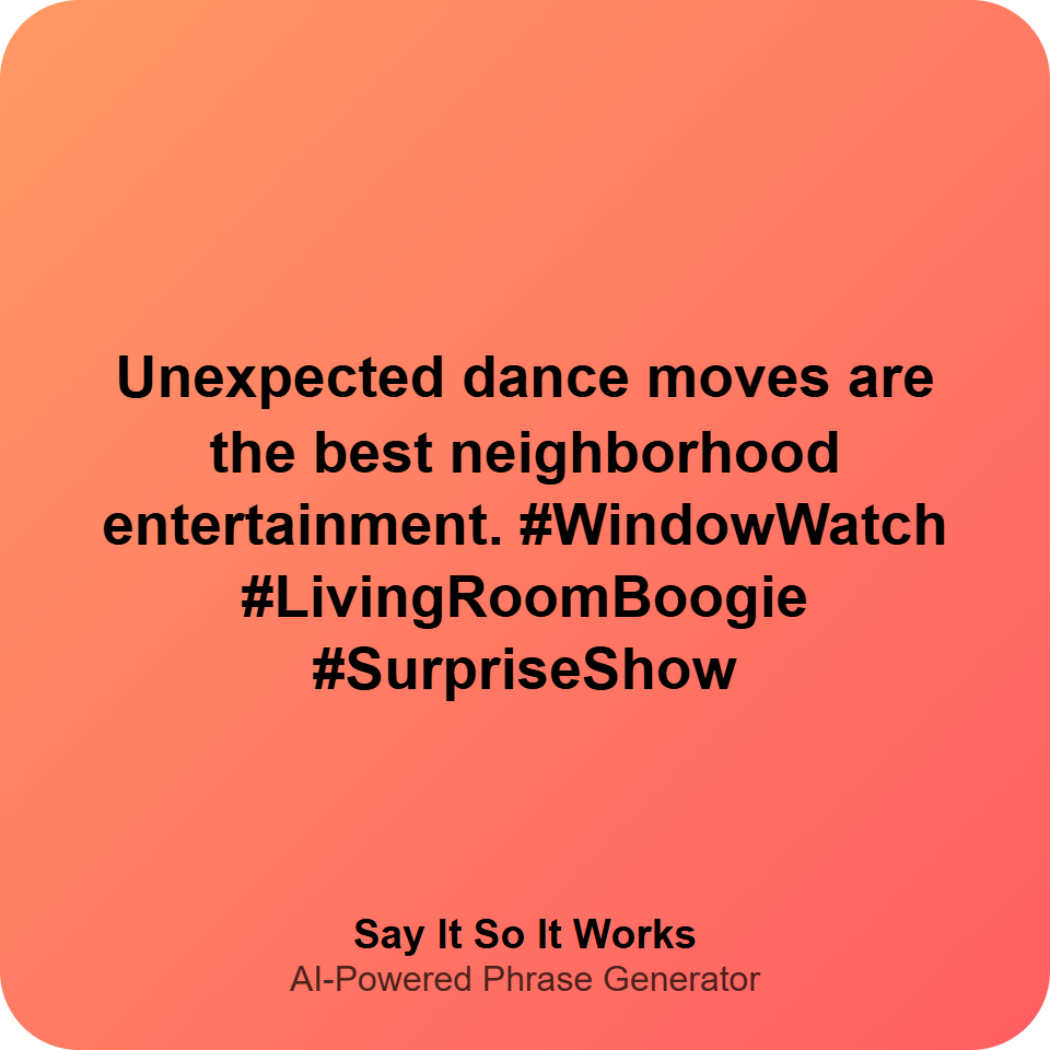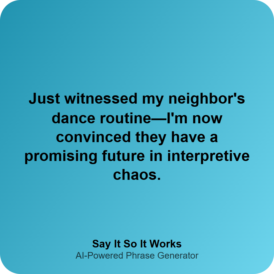Just witnessed my neighbor's dance routine—I'm now convinced they have a promising future in interpretive chaos.