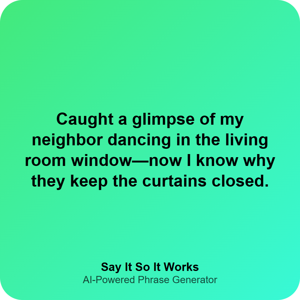 Caught a glimpse of my neighbor dancing in the living room window—now I know why they keep the curtains closed.