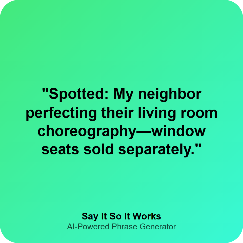 "Spotted: My neighbor perfecting their living room choreography—window seats sold separately."