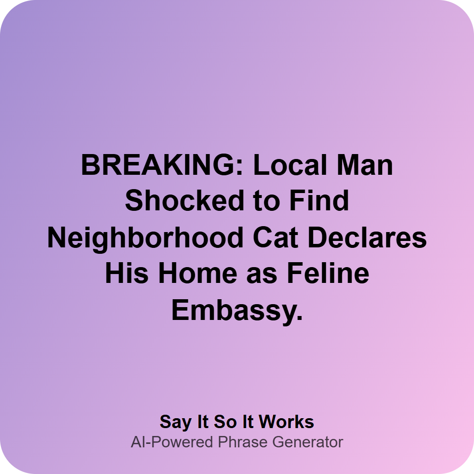 BREAKING: Local Man Shocked to Find Neighborhood Cat Declares His Home as Feline Embassy.