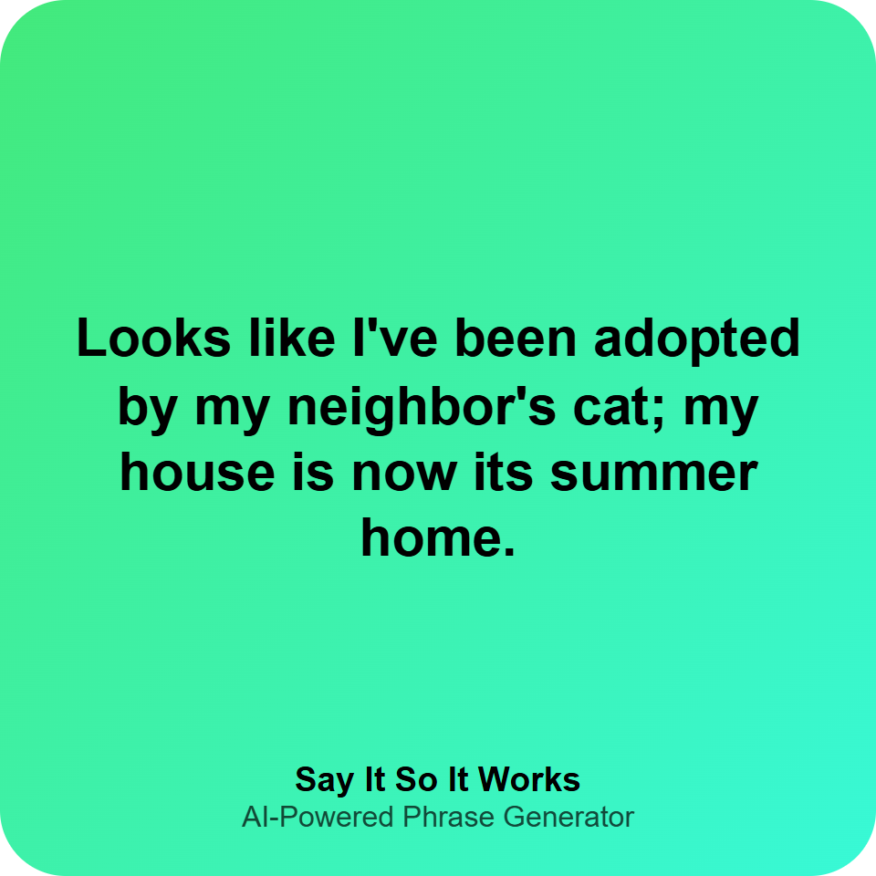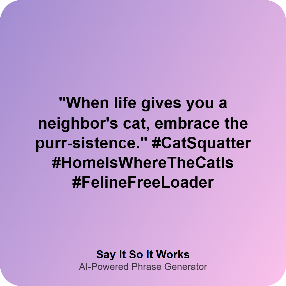 "When life gives you a neighbor's cat, embrace the purr-sistence." #CatSquatter #HomeIsWhereTheCatIs #FelineFreeLoader