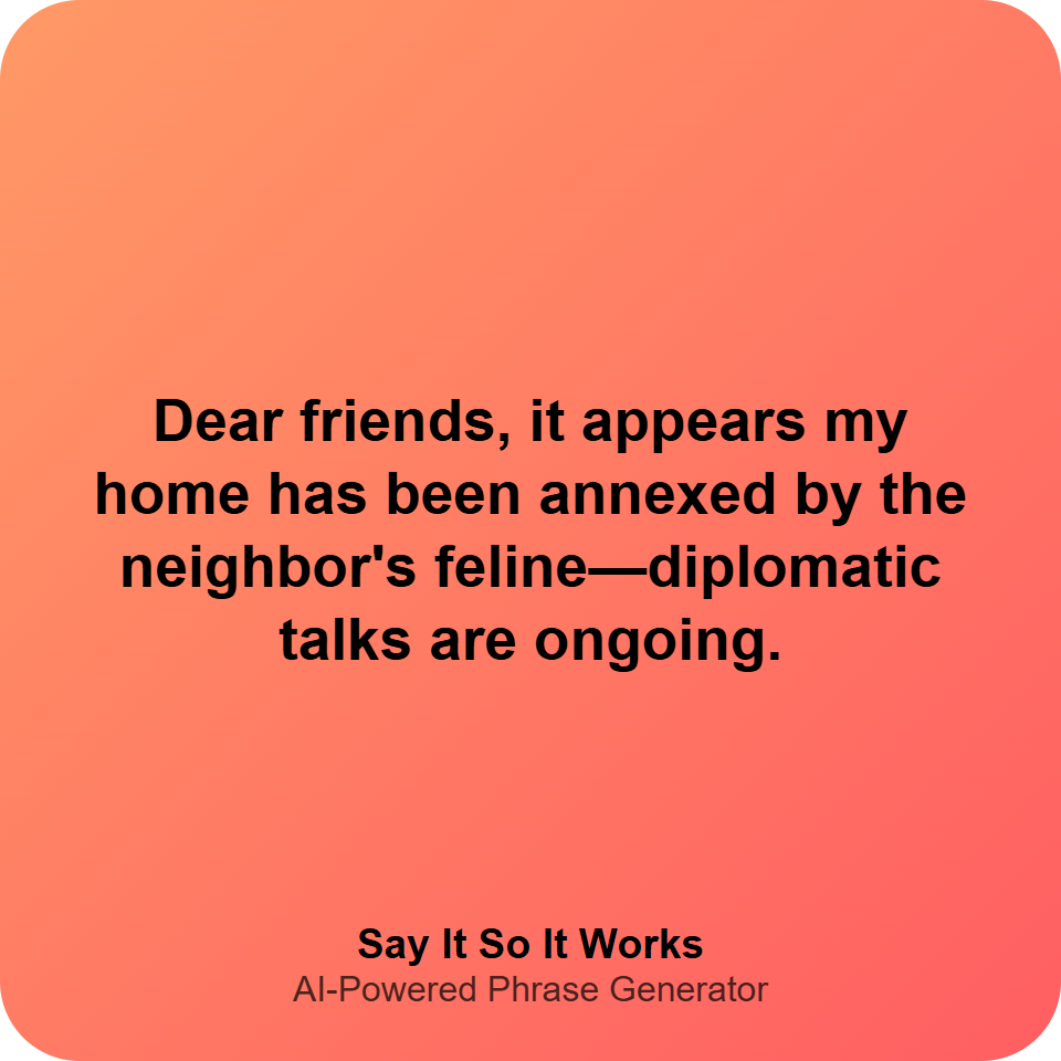 Dear friends, it appears my home has been annexed by the neighbor's feline—diplomatic talks are ongoing.