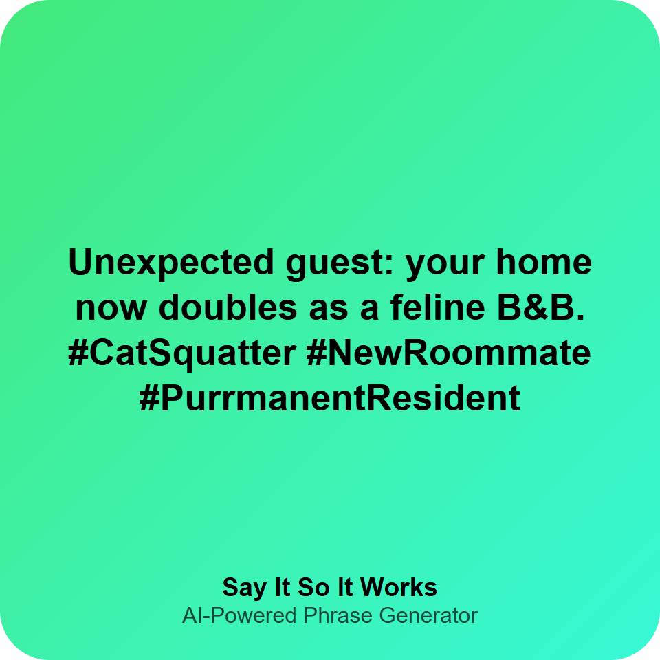 Unexpected guest: your home now doubles as a feline B&B. #CatSquatter #NewRoommate #PurrmanentResident