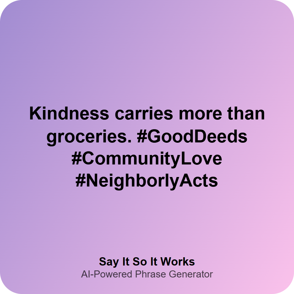 Kindness carries more than groceries. #GoodDeeds #CommunityLove #NeighborlyActs