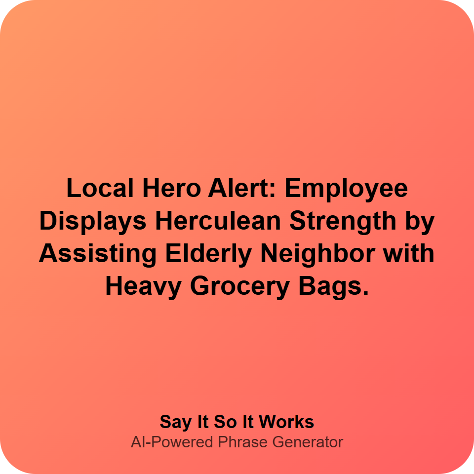 Local Hero Alert: Employee Displays Herculean Strength by Assisting Elderly Neighbor with Heavy Grocery Bags.