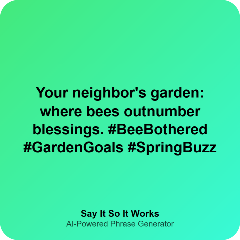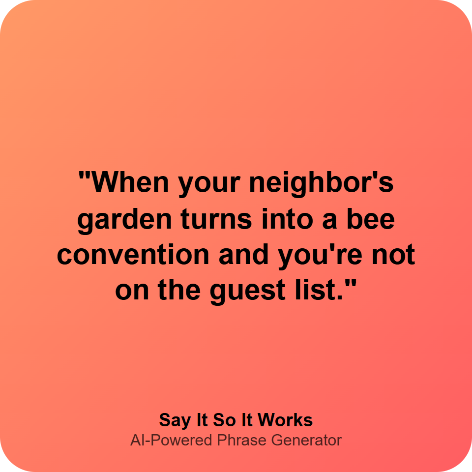 "When your neighbor's garden turns into a bee convention and you're not on the guest list."