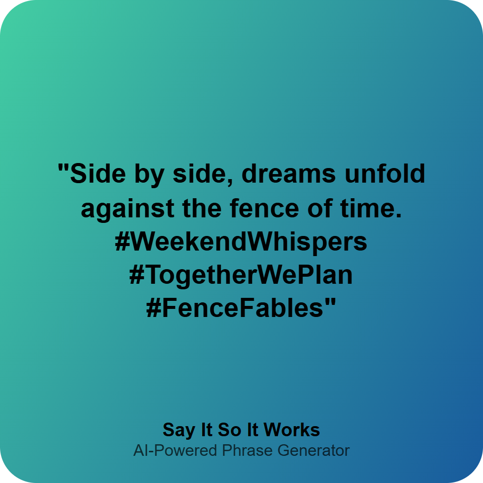 "Side by side, dreams unfold against the fence of time. #WeekendWhispers #TogetherWePlan #FenceFables"