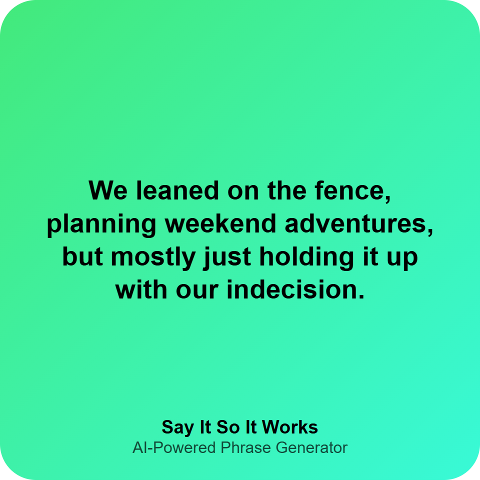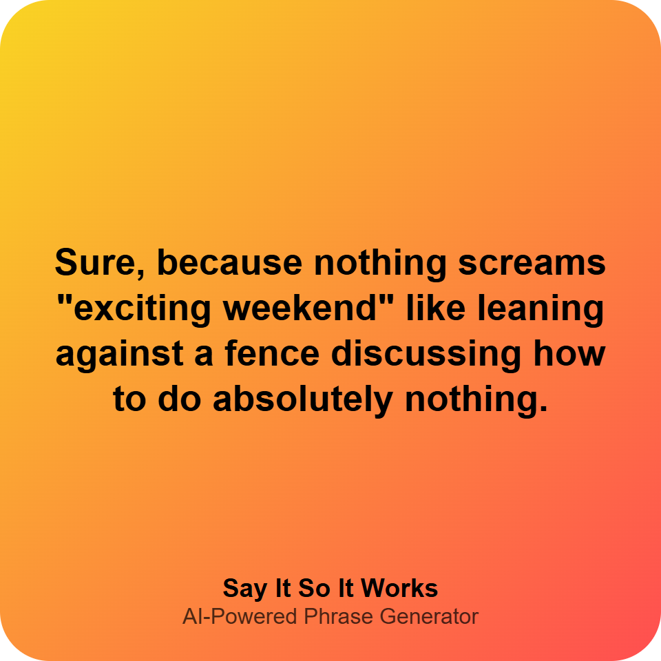 Sure, because nothing screams "exciting weekend" like leaning against a fence discussing how to do absolutely nothing.