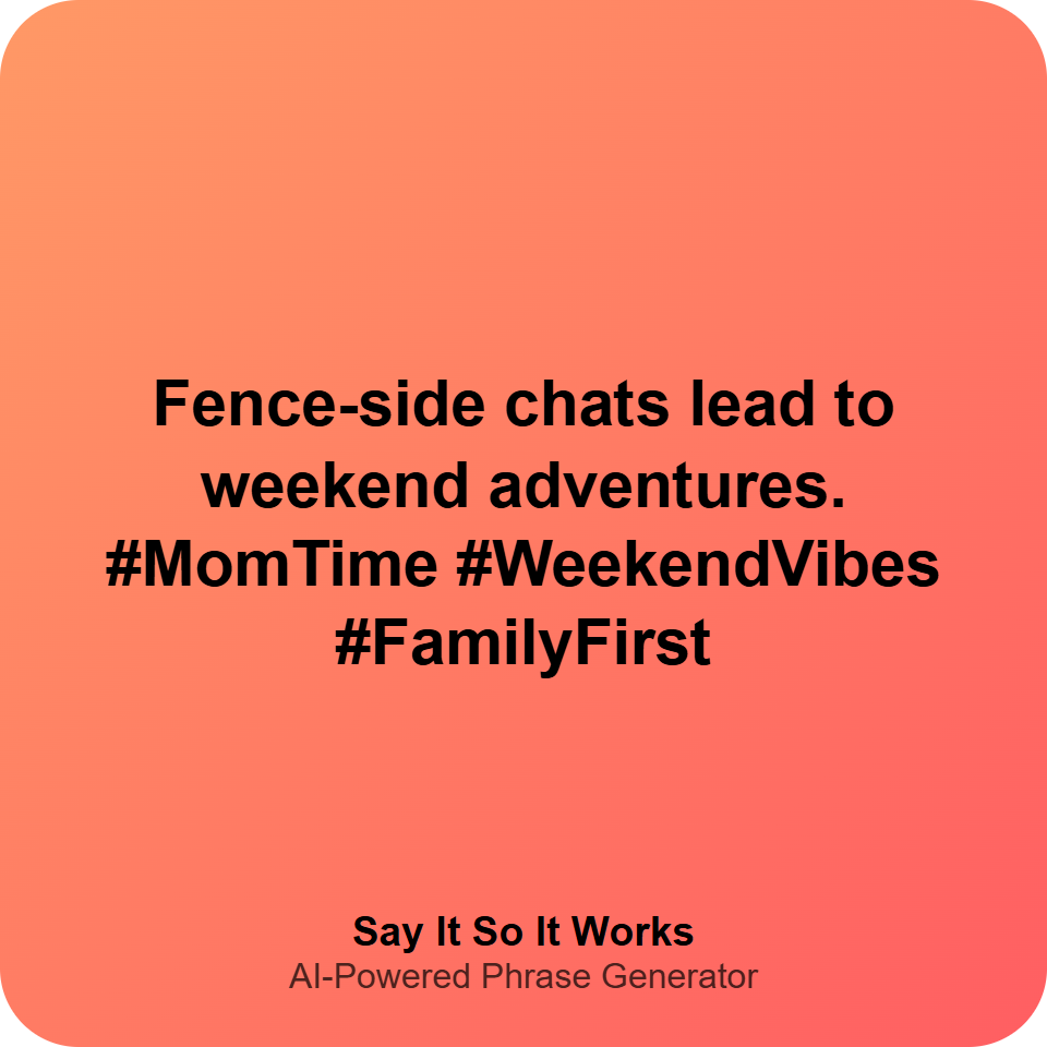 Fence-side chats lead to weekend adventures. #MomTime #WeekendVibes #FamilyFirst