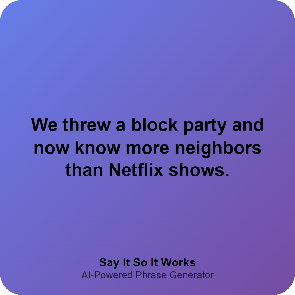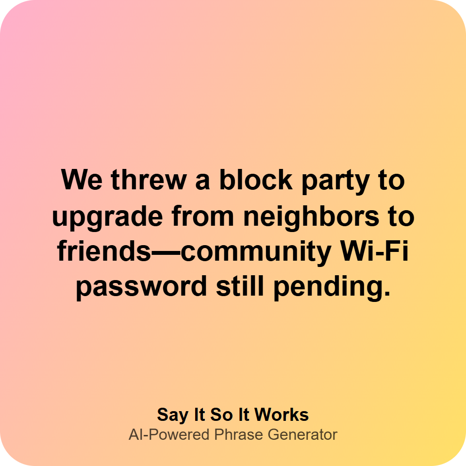 We threw a block party to upgrade from neighbors to friends—community Wi-Fi password still pending.