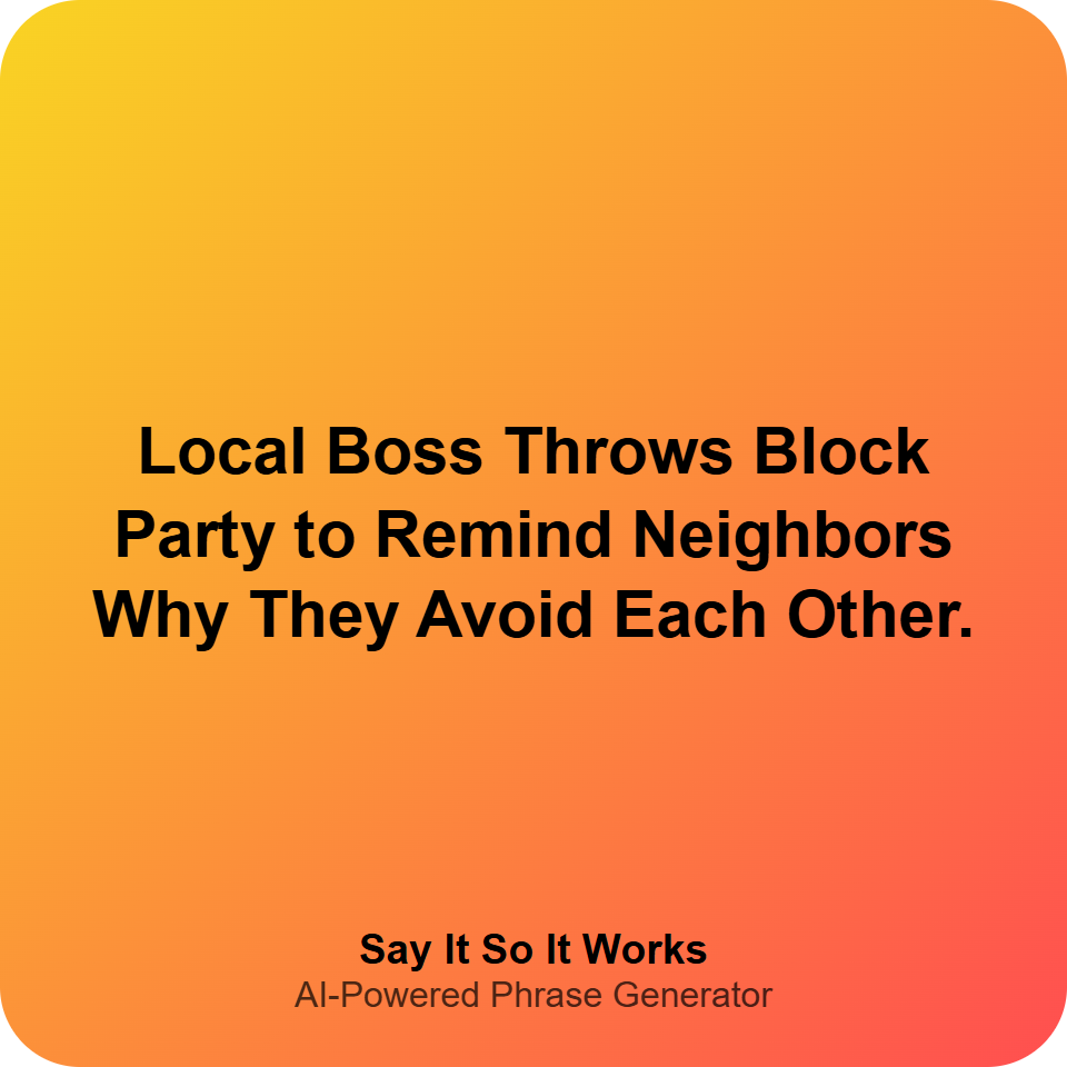 Local Boss Throws Block Party to Remind Neighbors Why They Avoid Each Other.