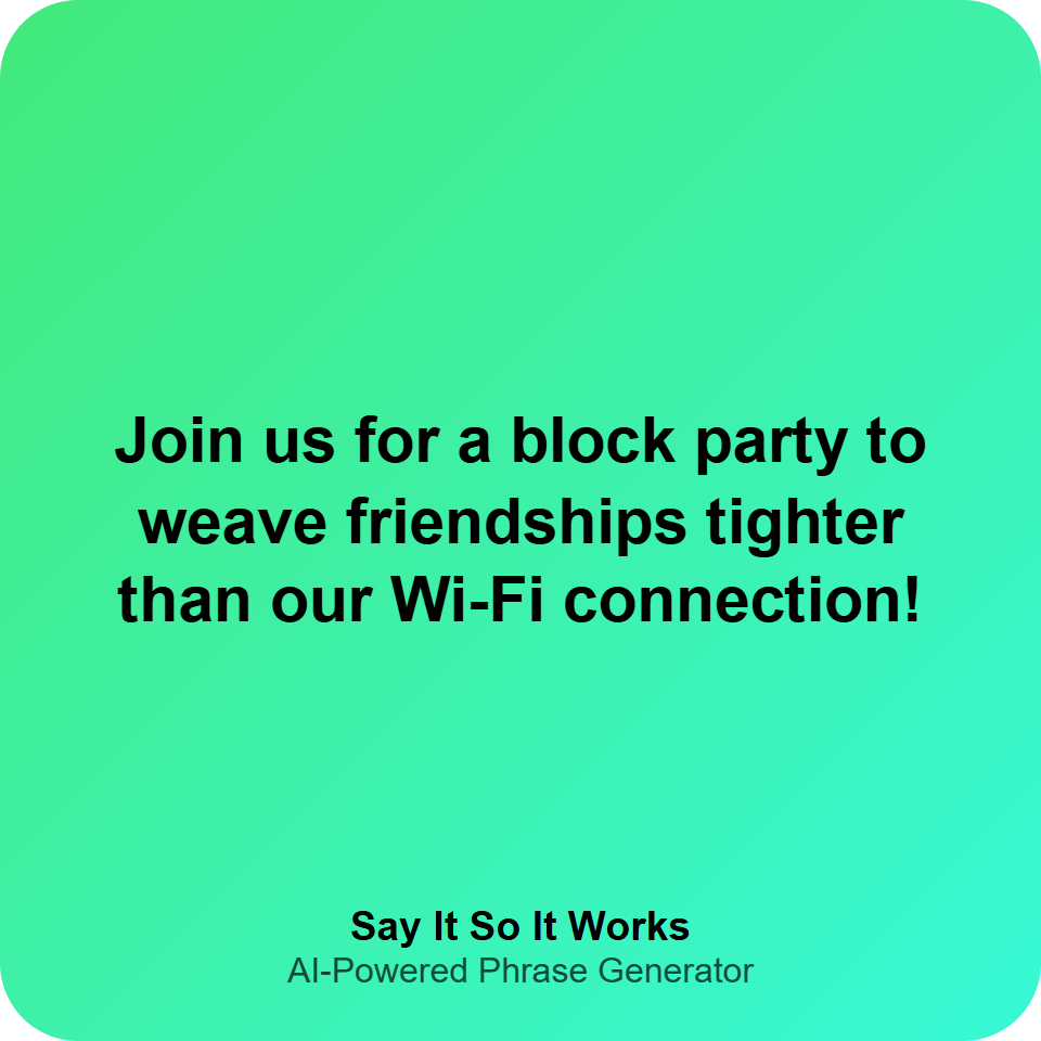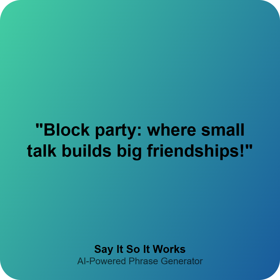 "Block party: where small talk builds big friendships!"