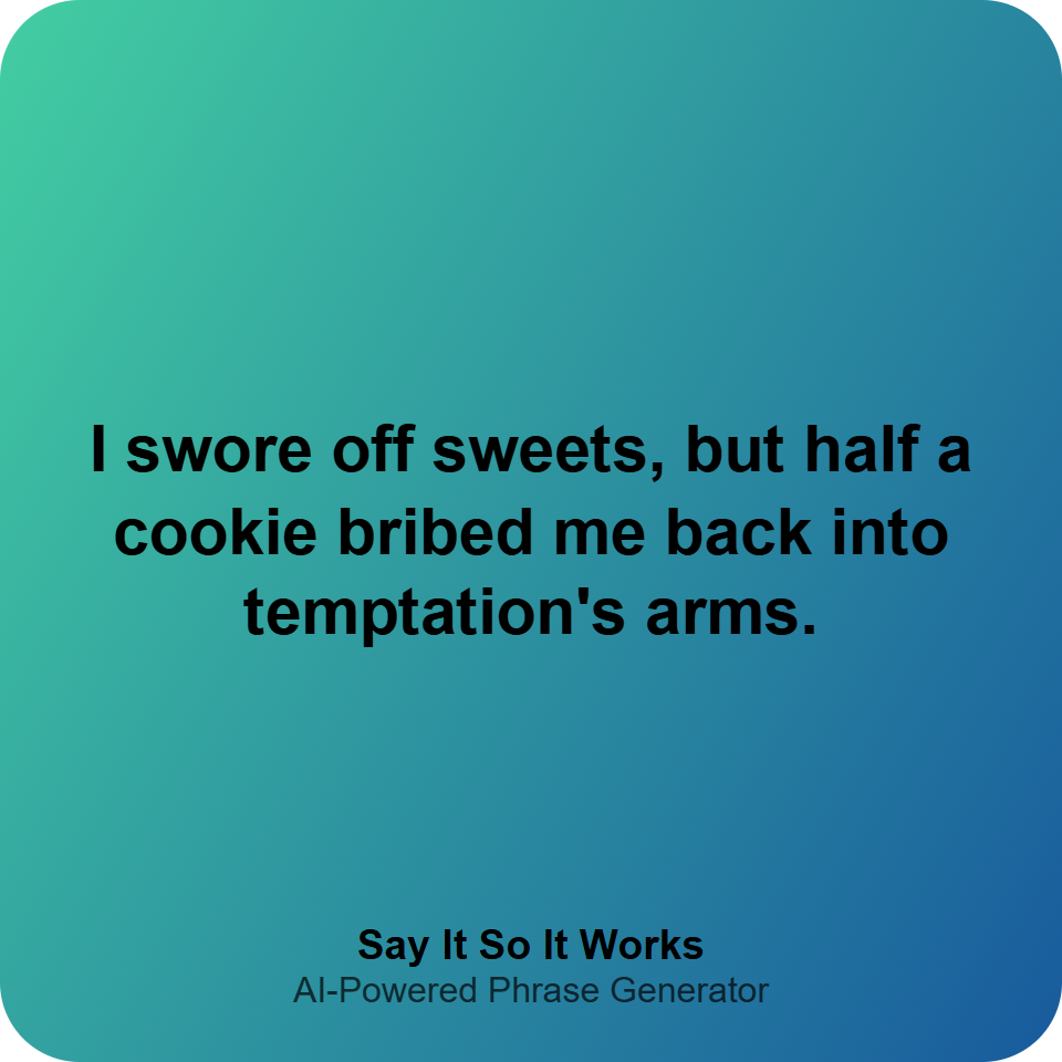 I swore off sweets, but half a cookie bribed me back into temptation's arms.