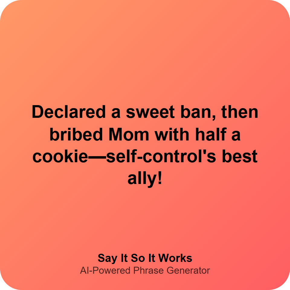 Declared a sweet ban, then bribed Mom with half a cookie—self-control's best ally!