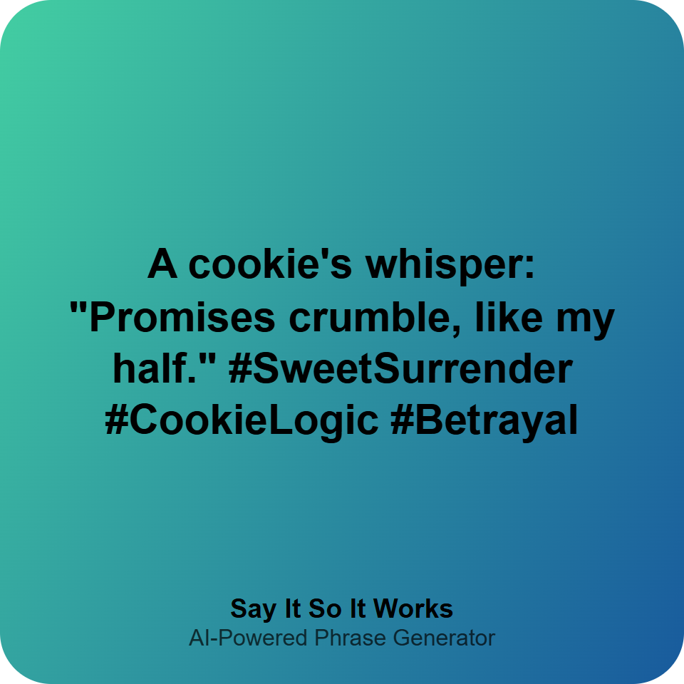 A cookie's whisper: "Promises crumble, like my half." #SweetSurrender #CookieLogic #Betrayal