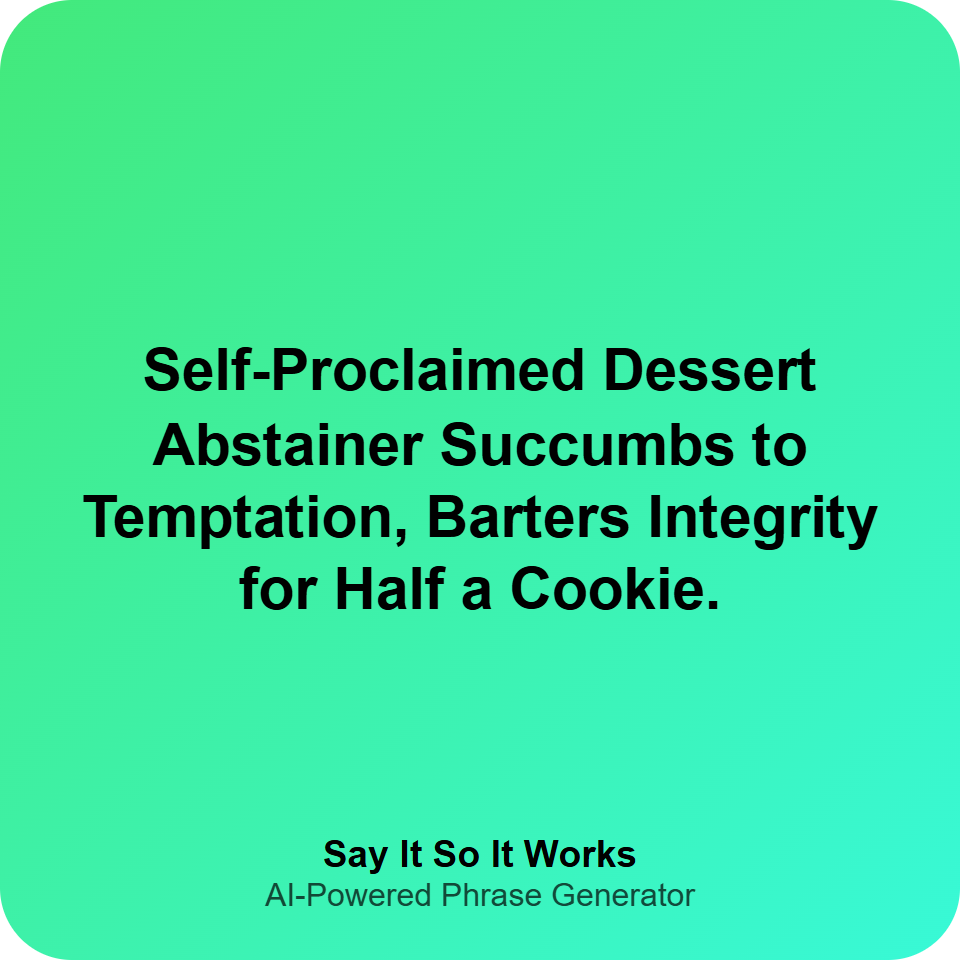 Self-Proclaimed Dessert Abstainer Succumbs to Temptation, Barters Integrity for Half a Cookie.
