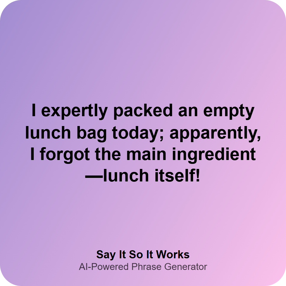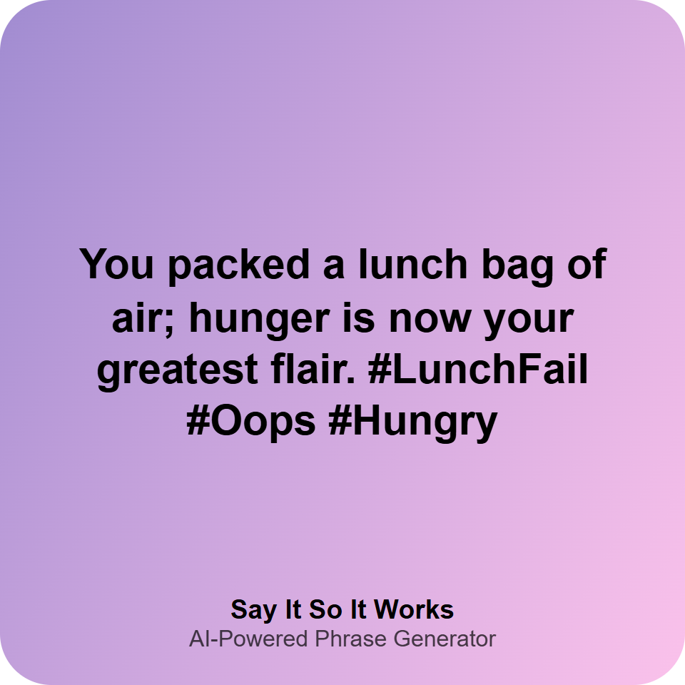 You packed a lunch bag of air; hunger is now your greatest flair. #LunchFail #Oops #Hungry