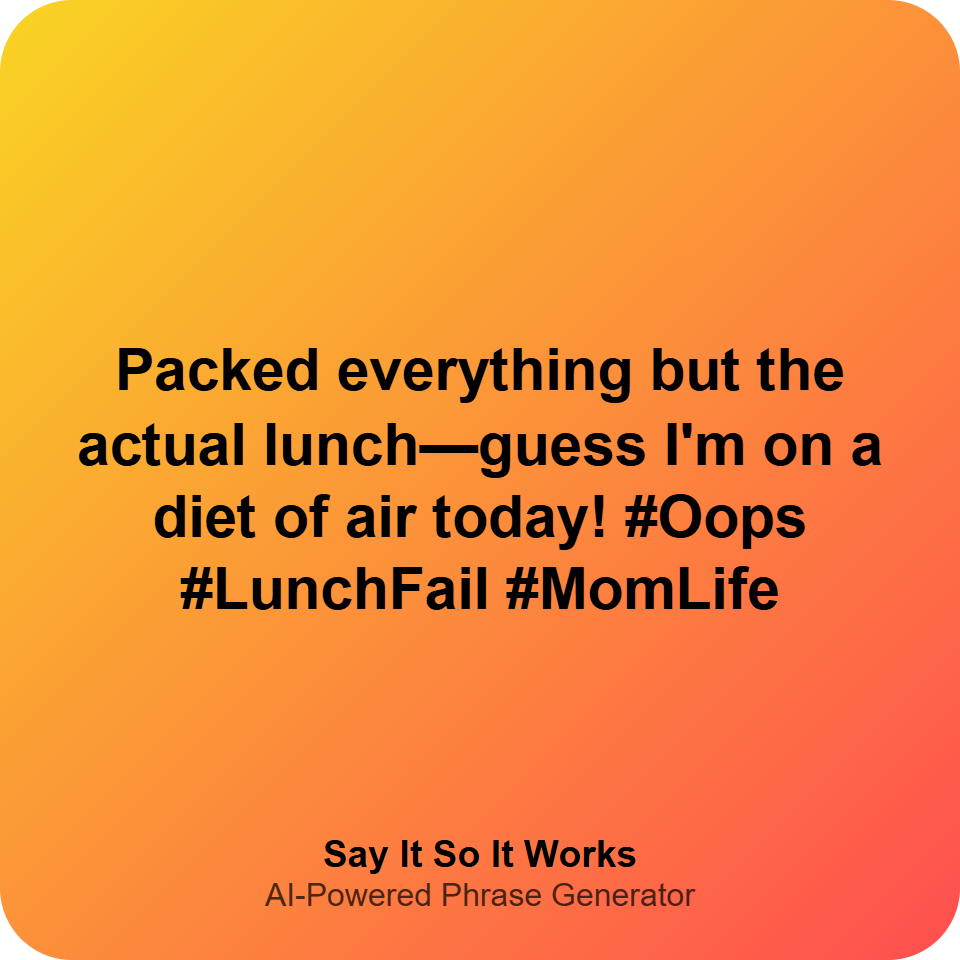 Packed everything but the actual lunch—guess I'm on a diet of air today! #Oops #LunchFail #MomLife