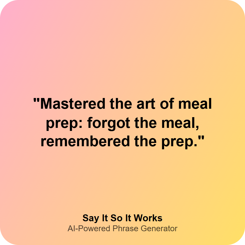 "Mastered the art of meal prep: forgot the meal, remembered the prep."