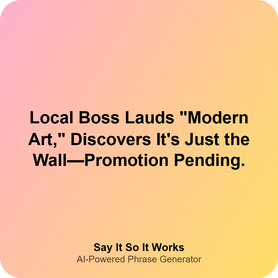 Local Boss Lauds "Modern Art," Discovers It's Just the Wall—Promotion Pending.