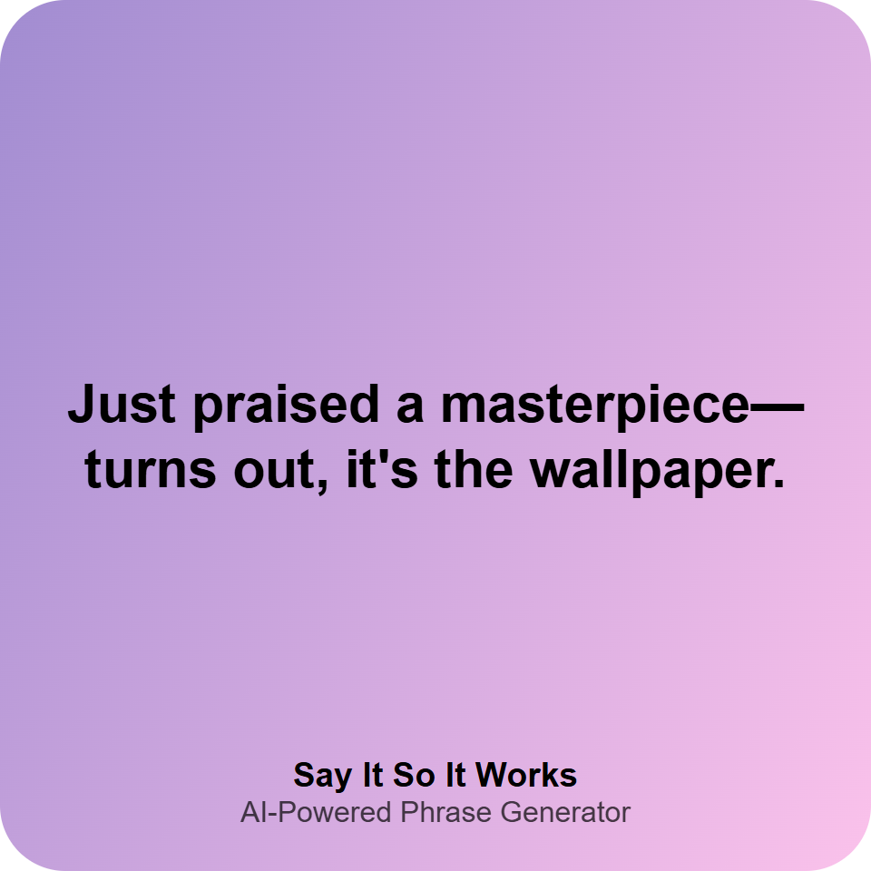 Just praised a masterpiece—turns out, it's the wallpaper.