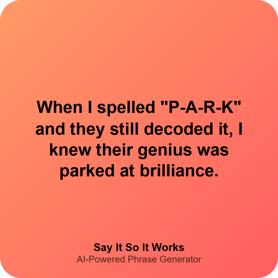 When I spelled "P-A-R-K" and they still decoded it, I knew their genius was parked at brilliance.