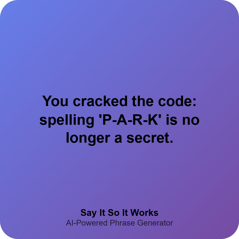 You cracked the code: spelling 'P-A-R-K' is no longer a secret.