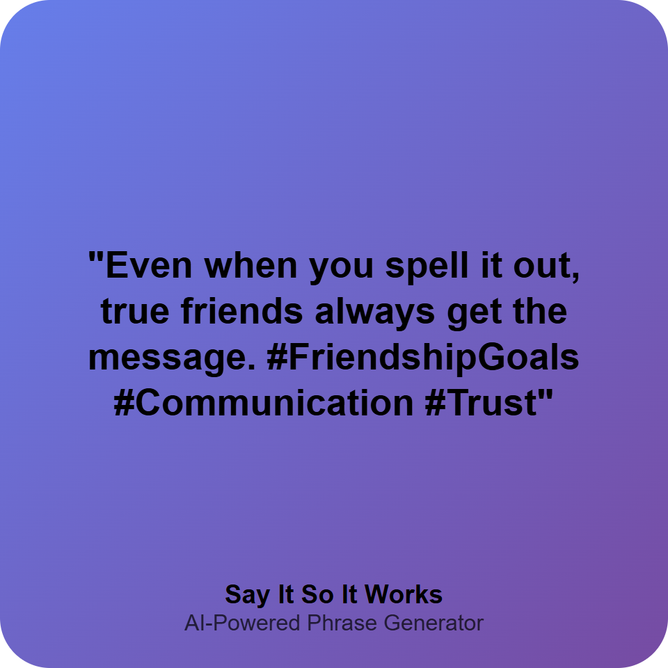 "Even when you spell it out, true friends always get the message. #FriendshipGoals #Communication #Trust"