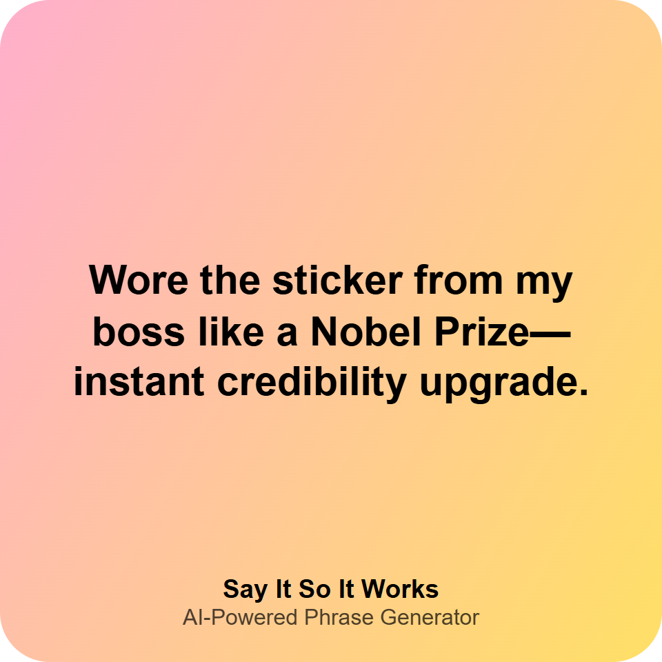 Wore the sticker from my boss like a Nobel Prize—instant credibility upgrade.
