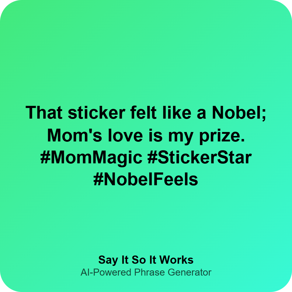 That sticker felt like a Nobel; Mom's love is my prize. #MomMagic #StickerStar #NobelFeels
