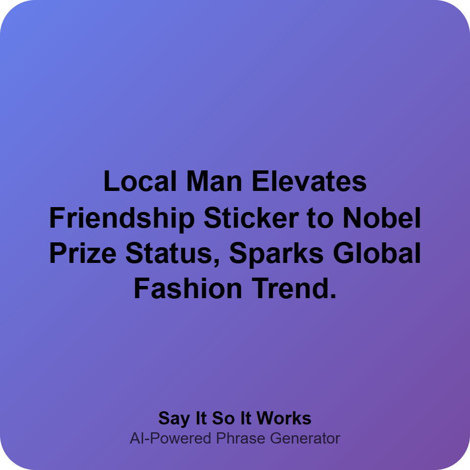Local Man Elevates Friendship Sticker to Nobel Prize Status, Sparks Global Fashion Trend.