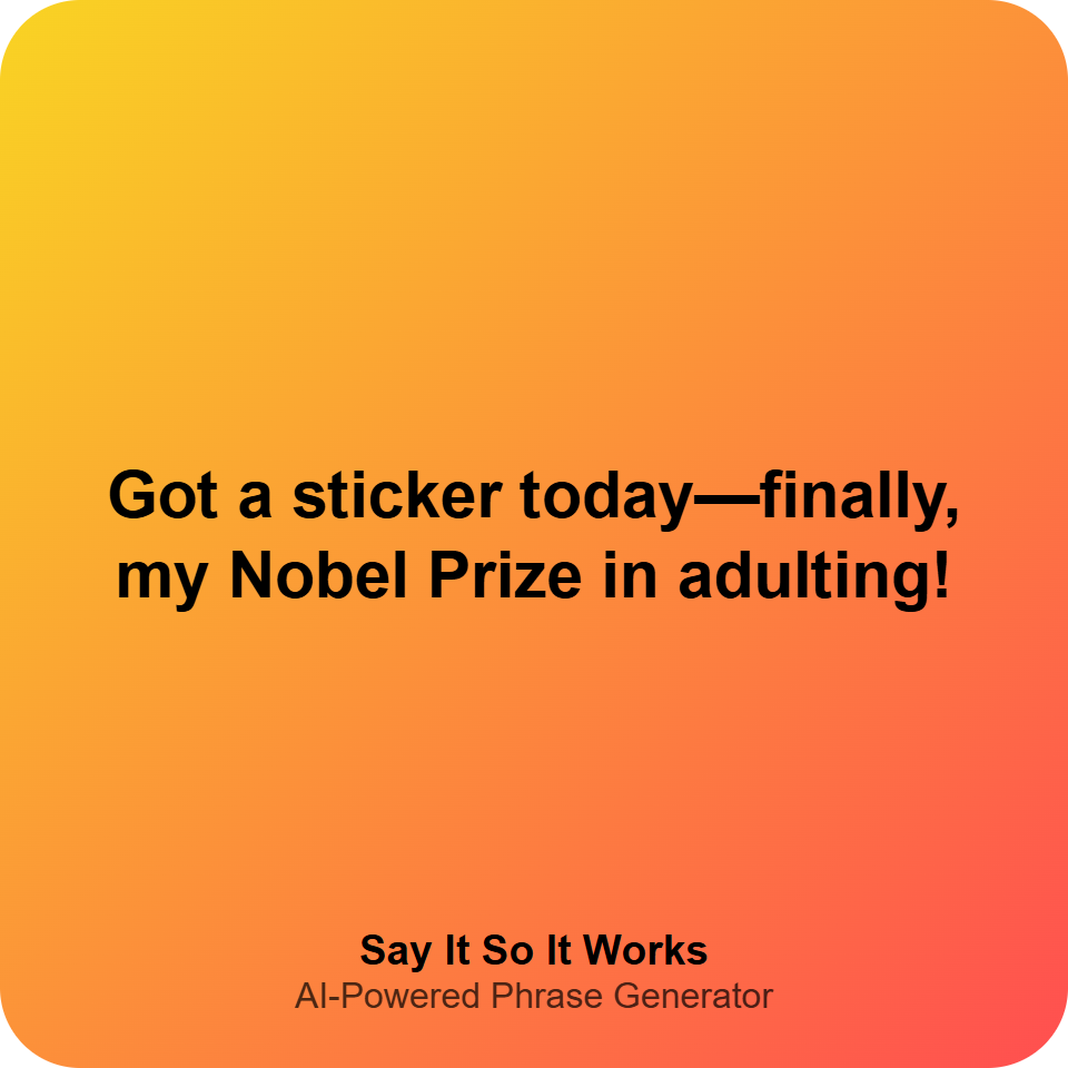 Got a sticker today—finally, my Nobel Prize in adulting!