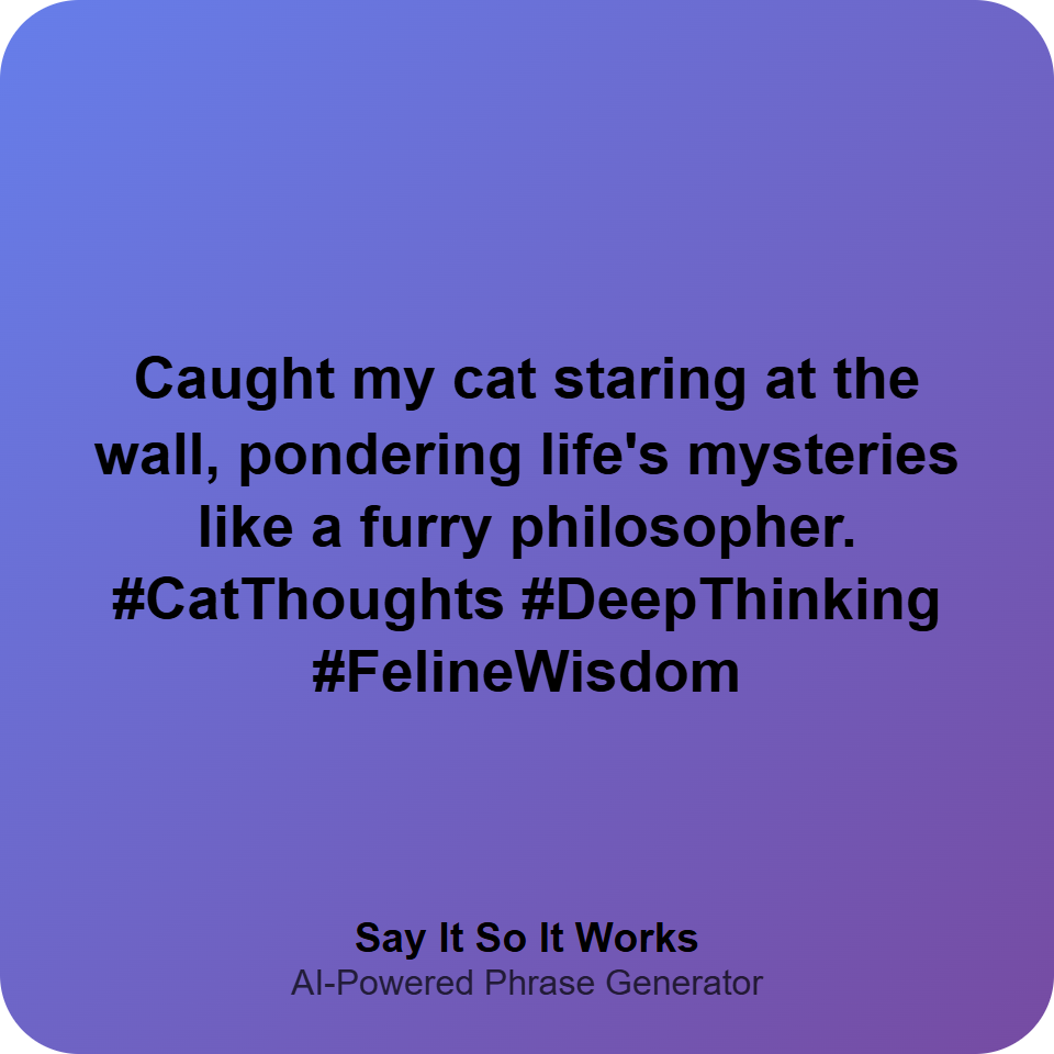 Caught my cat staring at the wall, pondering life's mysteries like a furry philosopher. #CatThoughts #DeepThinking #FelineWisdom