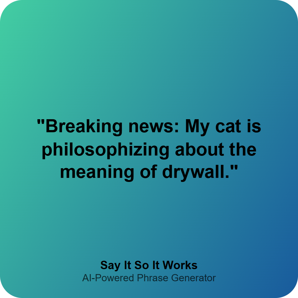 "Breaking news: My cat is philosophizing about the meaning of drywall."