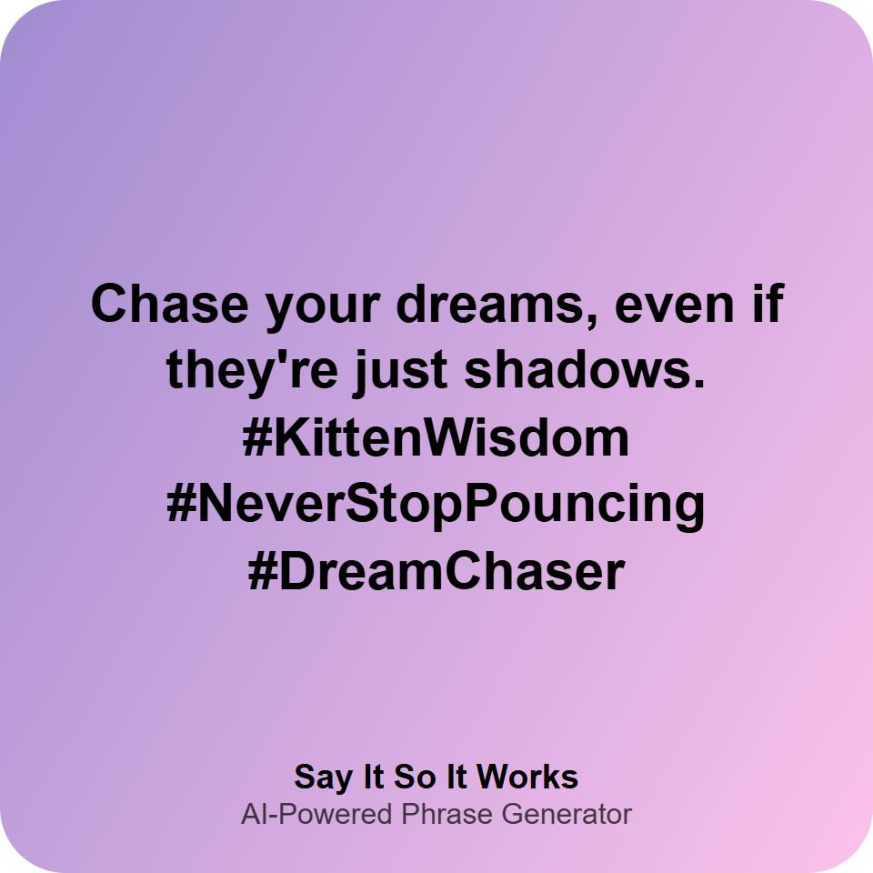 Chase your dreams, even if they're just shadows. #KittenWisdom #NeverStopPouncing #DreamChaser