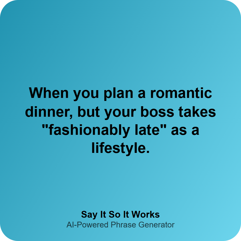 When you plan a romantic dinner, but your boss takes "fashionably late" as a lifestyle.