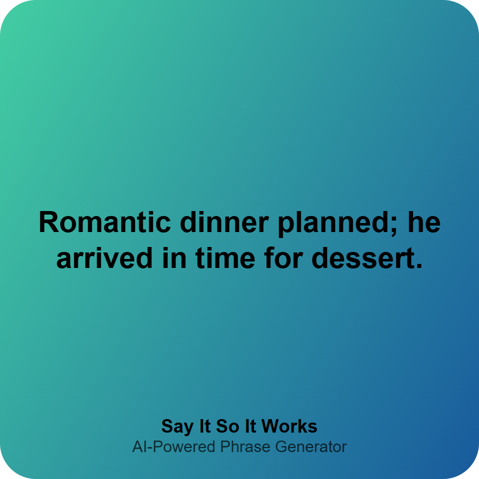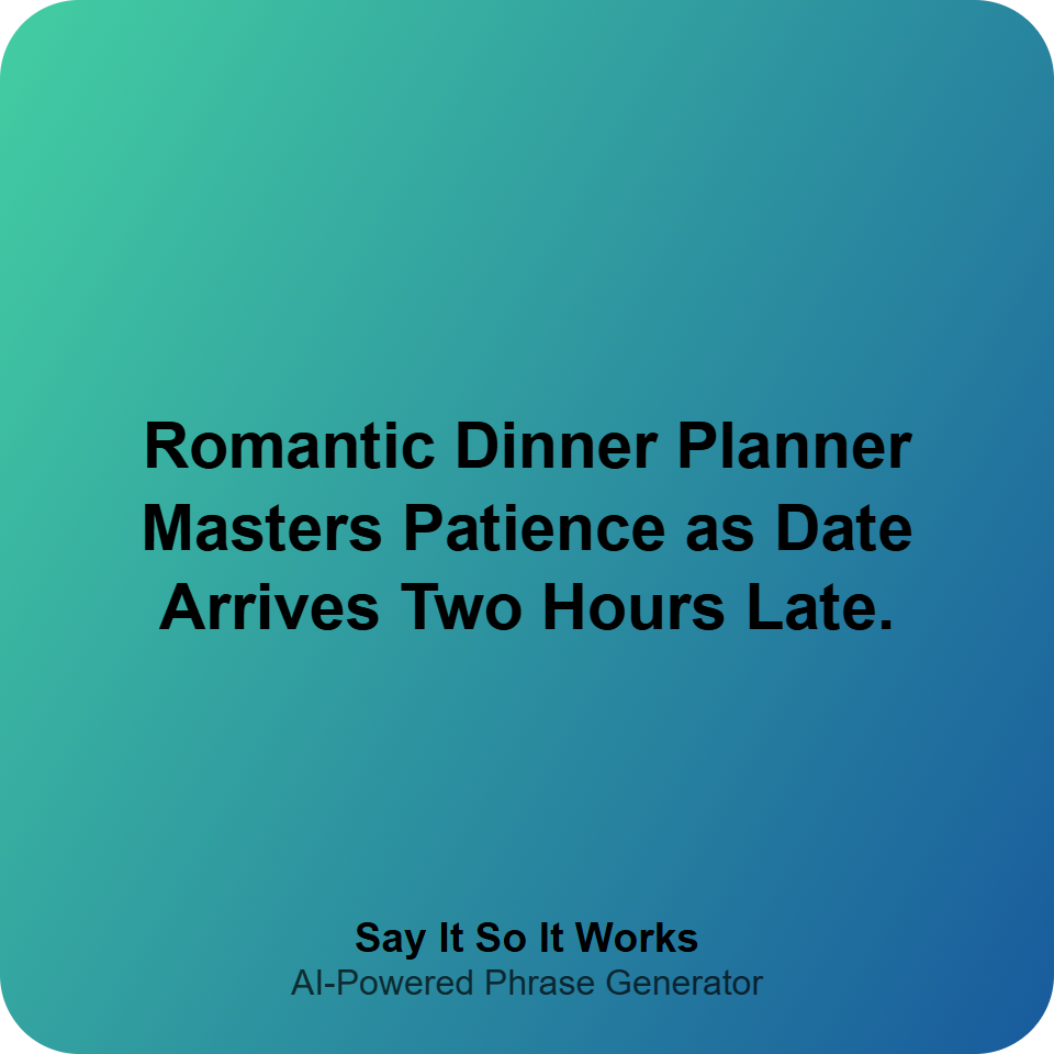 Romantic Dinner Planner Masters Patience as Date Arrives Two Hours Late.