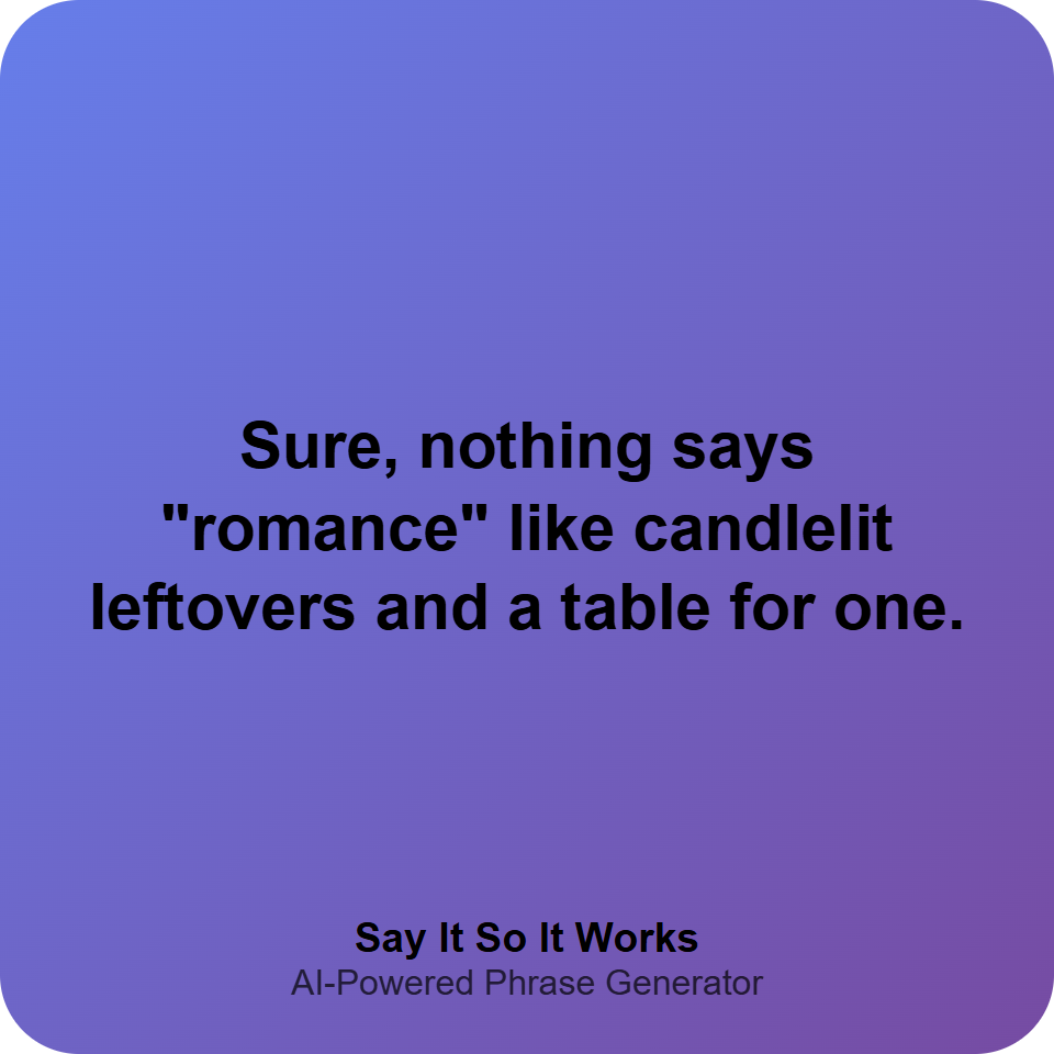 Sure, nothing says "romance" like candlelit leftovers and a table for one.