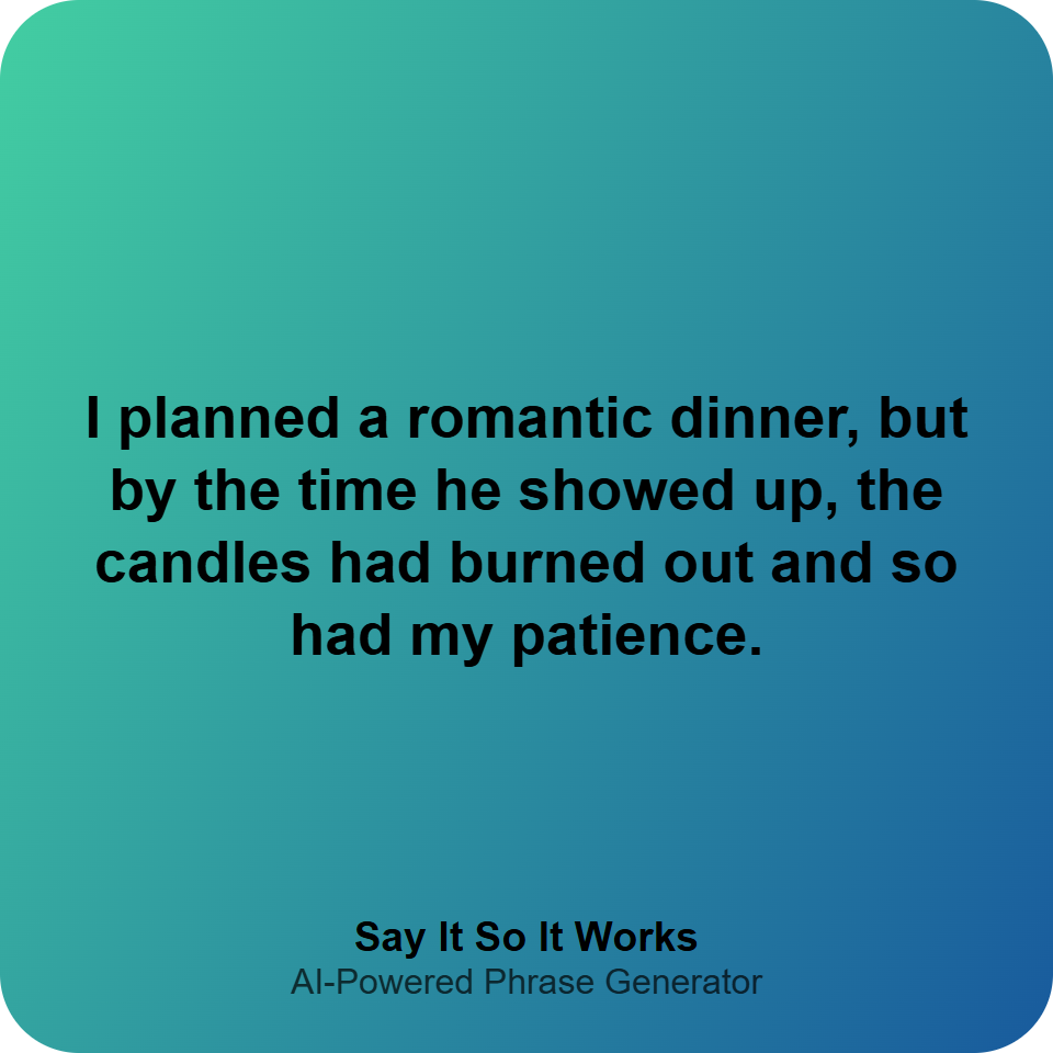 I planned a romantic dinner, but by the time he showed up, the candles had burned out and so had my patience.