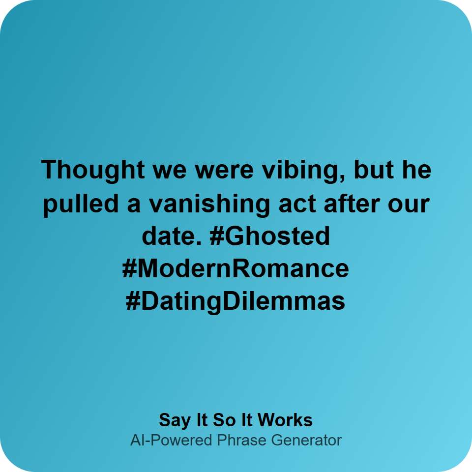 Thought we were vibing, but he pulled a vanishing act after our date. #Ghosted #ModernRomance #DatingDilemmas