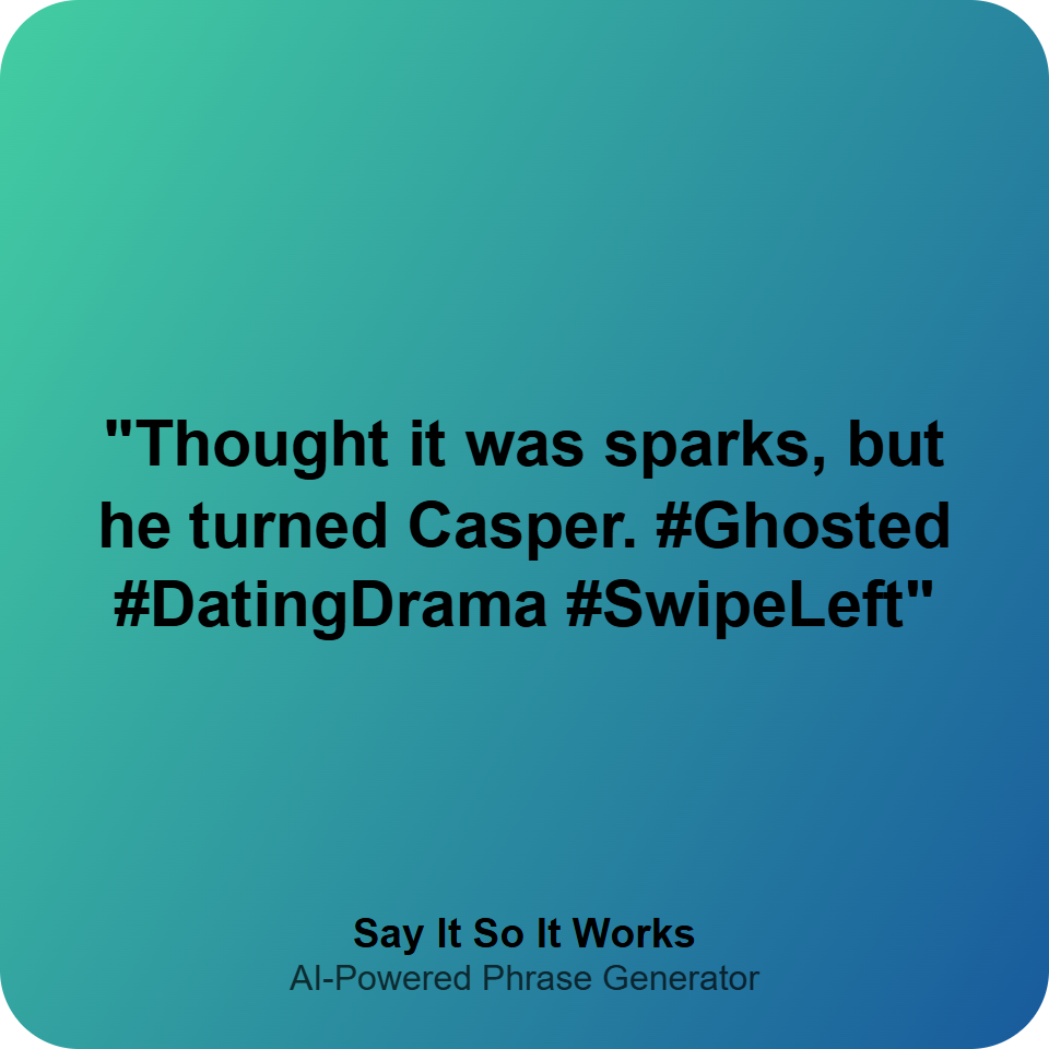"Thought it was sparks, but he turned Casper. #Ghosted #DatingDrama #SwipeLeft"